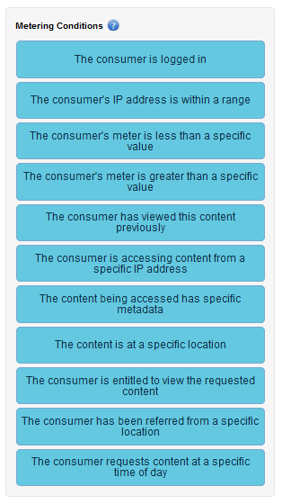 これで条件設定が完了します。この条件は、何度閲覧してもよいコンテンツ商品について、ユーザーが複数回閲覧できるようにする場合に便利です。従って、例えば、現在の条件が当てはまる場合、メーターは閲覧数を加算する必要がありません。