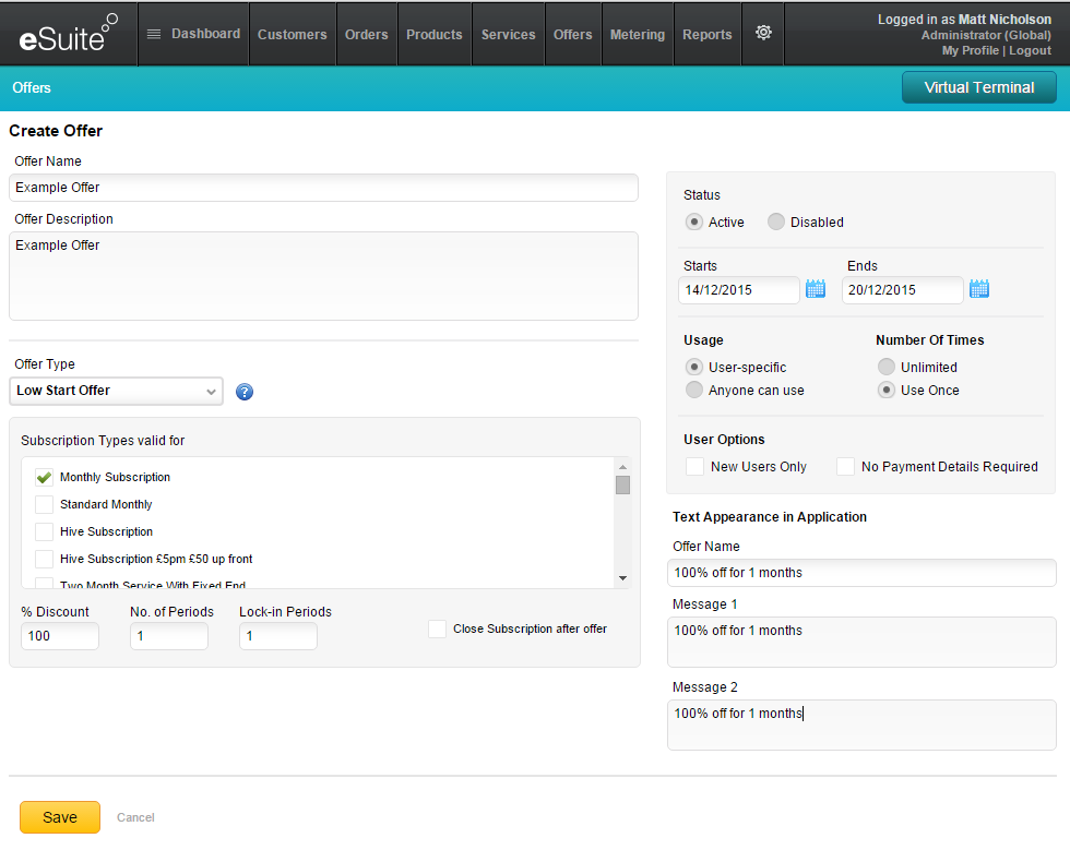 eSuite HQで新規オファーを作成・保存することができます。