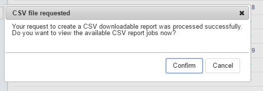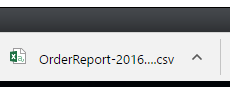 [CSVファイルの作成]と[すべてのCSVファイルを表示]のオプションが右上に表示されています。[CSVファイルの作成]のオプションをクリックし、指定した開始日から終了日の期間の注文についての新規CSVリポートを作成します。作成された新規レポートはレポート一覧の一番上に追加され、下図のダイアログボックスが表示されます。