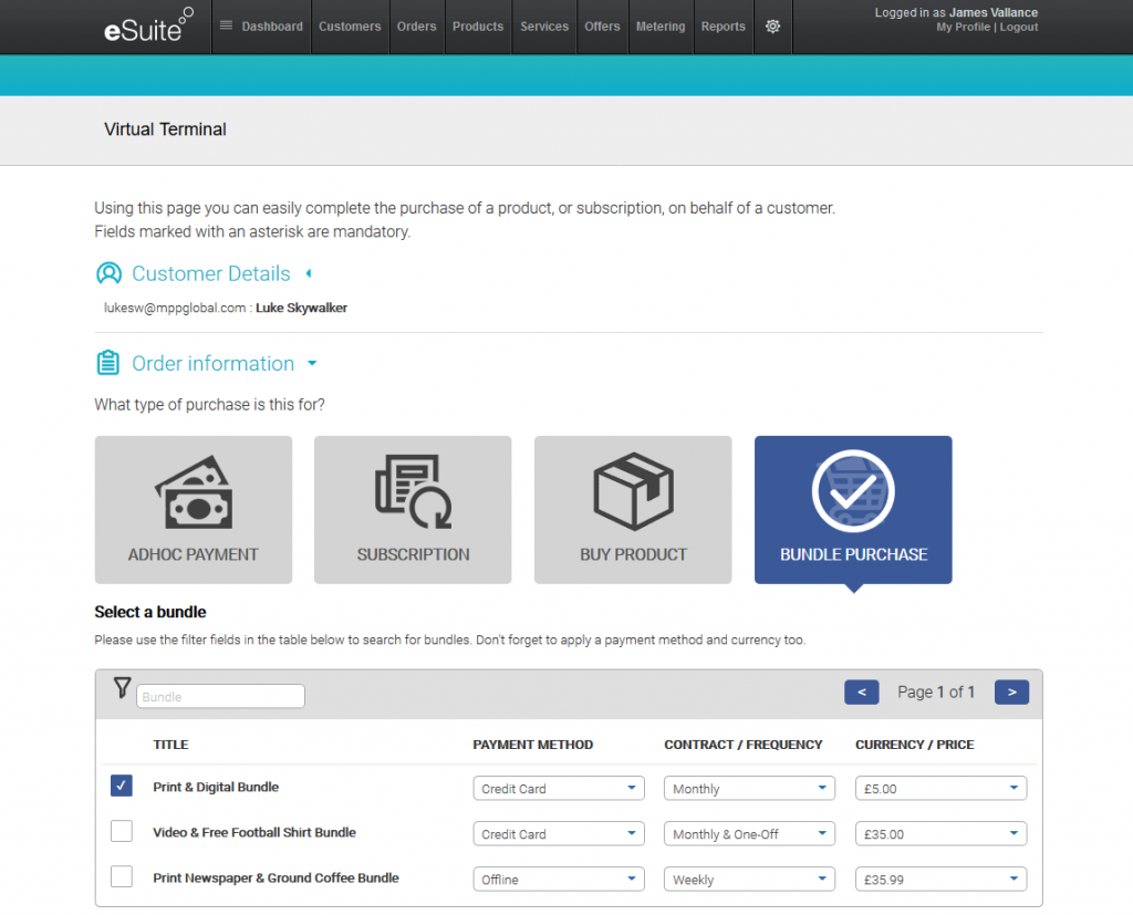 Purchasing a Bundle via Virtual Terminal