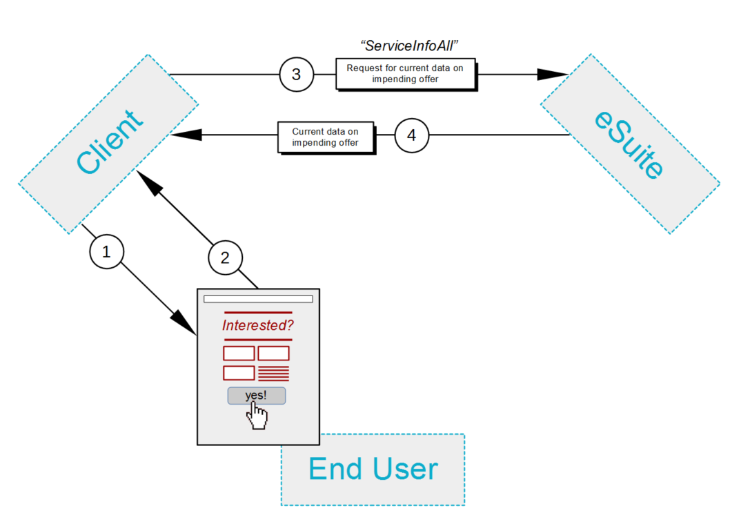3. クライアントはサーバー to サーバーを使用します ServiceInfoAll API to request offer-details from eSuite, where they are maintained.
